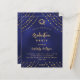 Un fond bleu marine orné d'étoiles dorées factices et d'une casquette. La couleur bleue est inégale. Personnalisez et ajoutez un nom, des détails de fête et une année. Le texte Remise de diplômes et le nom sont écrits avec un style de lettrage manuscrit moderne.
