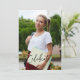 Montrez votre fierté avec cette invitation de fête de remise de diplômes simple et classique recto-verso. Le recto comporte une photo de votre diplômé, et le verso noir et blanc présente une typographie sans empattement et en script. Remplacez simplement la photo par celle de votre diplômé et ajoutez les détails. La couleur de fond noire peut être modifiée pour coordonner avec les couleurs de votre école ou de votre fête.