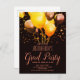 Une invitation de fête de remise des diplômes élégante avec des ballons en or et en rose gold profond sur fond noir avec un style rétro vintage Gatsby pour votre nom et un contraste de type de script tendance pour la fête de remise des diplômes. Design moderne élégant. Choisissez parmi nos nombreuses offres de polices pour votre nom si vous préférez essayer différents contrastes de type.