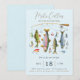 Invitez vos amis à célébrer votre retraite avec cette invitation sur le thème de la pêche avec des poissons et du matériel de pêche. C'est parfait pour l'homme ou la femme qui aime pêcher !