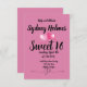 Invitation de fête de seize ans pour filles roses avec lettres noires et doubles coeurs roses ! Faisons la fête !