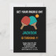 Faites entrer l'action avec cette élégante invitation d'anniversaire Ping Pong sur fond noir ! Avec son design moderne, ses raquettes de tennis de table et son fond noir épuré, cette invitation éditable est parfaite pour des célébrations sportives avec une ambiance cool et compétitive.