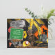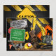 Cette invitation unique présente une pelleteuse réaliste jouant dans la boue entourée d'outils d'homme à tout faire. Personnalisez avec les détails de votre fête sur un panneau de signalisation.