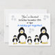 Une invitation de vacances amusante avec de délicieux pingouins qui ont l'air très cool et détendu.