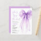 Élégante invitation à la douche nuptiale économique avec une belle aquarelle d'un arc de coquette violet, "Elle attache le noeud" écrit dans un script chic violet, et son nom et les détails de votre événement en lettres modernes.