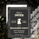 Parfait pour la saison effrayante et toutes les fêtes qu'elle implique, cette invitation d'Halloween noire et blanche reste mignonne et effrayante. Un petit fantôme mignon entouré de polices effrayantes et sophistiquées distingue cette invitation des autres avec son schéma de couleurs unique. Des citrouilles subtiles ornent l'arrière-plan de l'invitation pour un ajout de touche effrayante. Parfait pour les fêtes d'enfants et les fêtes de costumes pour adultes !