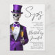 Levez votre verre à l'élégance effrayante avec cette invitation de fête d'Halloween squelette en violet ! Avec un squelette élégant dans un smoking violet chic et un haut-de-forme tenant du champagne, ce design allie le charme gothique au glamour de cocktail. Parfait pour les soirées d'Halloween classe, les fêtes costumées ou les rassemblements effrayants-chic. Personnalisez le texte avec vos propres détails d'événement et organisez une nuit de sophistication et de plaisir effrayants.