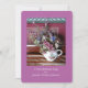 Le devant de cette invitation est une photo originale de belles fleurs dans une théière vintage, sur un arrière - plan violet clair. La couleur Arrière - plan est "Orchidée rayonnante", la couleur Pantone de l'année 2014. Le texte est blanc. Une belle invitation à une fête du 90ème anniversaire. Photo originale de Marcia Socolik. Tous droits réservés © 2014 Alan & Marcia Socolik.