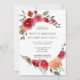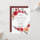 Invitation d'anniversaire florale aquarelle bohème rustique élégante avec des roses et de la verdure aux couleurs vives et vibrantes en pêche, rose et burgundy. Fond marsala burgundy. Peut être personnalisé.
