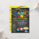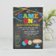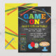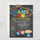 Notre invitation de fête d'anniversaire originale et best-seller de style tableau noir Game On Arcade Pizza Party est l'invitation parfaite pour toute fête sur le thème du jeu avec un thème arcade, laser tag ou pizza. Notre design présente un fond de tableau noir, un mélange de lettres colorées et des graphiques de jeux d'arcade, de pizza, de ballons et de laser.