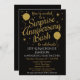 Cette invitation de fête d'anniversaire de mariage surprise festive et amusante présente un fond noir avec des ballons et des étoiles à paillettes dorées fausses. Elle a une élégance et une fantaisie avec une touche stylée. Pour 5ème, 10ème, 15ème, 20ème, 25ème, 30ème, 35ème, 40ème, 45ème, 50ème ou toute autre année entre !