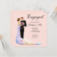 Célébrez la bonne nouvelle de vos fiançailles avec votre famille et vos amis en envoyant ces magnifiques invitations à une fête de fiançailles. Ce design moderne présente un couple élégant habillé en tenue de soirée et se regardant amoureusement. Les couleurs pastel font de cette invitation de fiançailles un élément stylé. Ce design fait partie d'une collection de fiançailles et est disponible sur des enveloppes, des étiquettes de vin, des ballons de table, des serviettes en papier, des banderoles, des étiquettes de faveur et des boîtes de faveur.