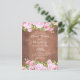Caractérisé par de jolies guirlandes de roses roses encadrant vos détails de fête de fiançailles personnalisés en texte élégant, sur un fond en bois rustique. Conçu par Thisisnotme©
