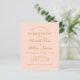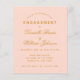 Une simple invitation de fiançailles avec une couleur moderne : rose vif. Il n'a que du texte doré sur arrière - plan blush. Les noms sont écrits dans un élégant script calligraphique, le reste en casquette. la première ligne est le texte voûté.
