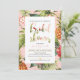 Cette invitation de fiançailles unique présente un beau motif tropical avec une typographie dorée.