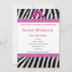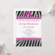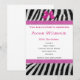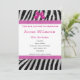 Cette invitation amusante présente des tirages en noir et blanc de zèbre en haut et en bas. Un graphique d'un ruban rose longe l'impression zébrée. Un arc rose est suspendu au sommet.