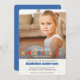 Invitation de fête de fin d'études maternelle élégante et stylée. Grande photo centrale avec en-tête superposé de lettres de couleurs mixtes. Typographie et composition minimalistes modernes. Sophistiqué et jeune. Invitation à conserver pour célébrer une étape spectaculaire dans le parcours éducatif.