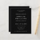 Obtenez qualité ET abordabilité avec cette invitation de fin d'études tendance avec paillettes argentées à petit budget. Le design est un fond noir épuré avec le nom du diplômé bordé de stries de paillettes argentées scintillantes.