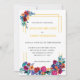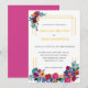 Une collection de mariage sur le thème mexicain à l'aquarelle colorée. Ce design audacieux et magnifique présente une abondance de fleurs colorées et une typographie moderne. L'illustration botanique comprend la pivoine, la rose, le fuchsia, le lys et la verdure dans des nuances de rose, violet, orange, jaune, vert et bleu.