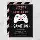 Simple minimaliste jeu contrôleur de jeu invitation d'anniversaire de gamer. Vous avez atteint le niveau de n'importe quel âge ! Tout le texte est personnalisé. Fun simple néon lignes sur le dos de la carte.