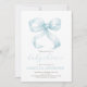 Invitation modifiable baby shower bleu. Parfait pour une soirée à thème pour bébé doux. Dispose d'un joli arc bleu. Tout le texte peut être personnalisé pour votre occasion.