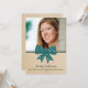 Doux et charmant Invitation de graduation Cute Bow avec un pois blanc turquoise arc et faux arrière - plan de texture papier. Parfait pour annoncer vos nouvelles diplômées et inviter vos amis et votre famille à célébrer cette réussite. Facile à customiser, ajoutez simplement une photo et les détails de votre partie dans les champs de texte fournis.