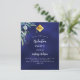 Arrière - plan bleu marine, décoré de verdure. La couleur bleue est inégale. Personnalisez et ajoutez un nom et des détails du parti. 1 feuille = 1 invite imprimé bord à bord.