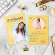 Célébrez votre graduation avec style et élégance avec cette invitation de graduation jaune rétro moderne! Doté de deux espaces photo pour ajouter une touche spéciale à l'invitation, ce design élégant est parfait pour toute célébration. L'invitation comprend également tous les détails de la fête, y compris l'heure, la date et le lieu. Préparez-vous à célébrer votre journée spéciale avec ce design unique !