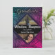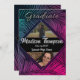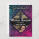 Invitation colorée colorée à la remise des diplômes tropicaux pour la fête des diplômés. Belle décoration feuille de palmiers tropicaux sur l'avant et l'arrière avec option photo personnalisée.
