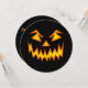 C'est un Invitation sculpteur Citrouille d'Halloween. L'avant affiche une face jack-o-lanterne brillante. Back contient des détails qui peuvent être modifiés pour correspondre à votre date, heure, emplacement et informations rsvp. Cette invitation est une invitation circulaire 5,25 x 5,25.