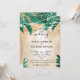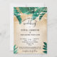 Planifiez votre mariage à la destination de plage d'île tropicale ? Invitez vos invités avec cette belle invitation avec illustration de jarre lumineuse aux lumières féeriques scintillantes et feuilles tropicales de palmier sur fond doré