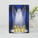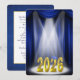 Invitation à la cérémonie de remise des diplômes pour la promotion 2026 en bleu et or sur scène avec projecteurs.
