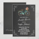 Invitation de douche nuptiale avec design de vélo et arrière - plan en tableau noir.