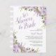 Invitations de douche nuptiale sur mesure et abordables. Ce joli design féminin a une bordure florale aquarelle avec fleurs violettes pastel et verdure. Personnalisez le design avec les détails de votre fête de douche nuptiale. Reverse side a un motif de bande d'aquarelle violet ou utilisez l'espace pour ajouter du texte et des photos supplémentaires. Cliquez sur Customiser pour choisir une couleur arrière - plan et modifier les polices et les couleurs du texte pour créer une invitation unique de wedding shower printemps ou été.