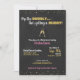 Gold, rose, noir et blanc "pop the bubbly it's up a hubby" invitation de douche nuptiale avec un arrière - plan de tableau noir, des modèles de parties scintillant faux or et des lunettes de champagne.