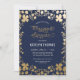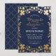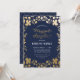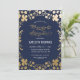 Cette jolie invitation à la douche nuptiale a une allure vintage et présente une bordure florale illustrée et les mots "Fête des mariées" en or. L'arrière - plan est bleu marine, mais peut être customisé à n'importe quelle couleur que vous choisissiez. L'arrière de l'invitation comprend un motif en quatrefoil or avec un arrière - plan bleu assorti qui peut également être échangé. Le texte est personnalisable pour votre événement spécial de célébration pré-mariage.