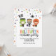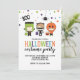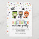 Invitation de soirée costumée d'Halloween avec frankenstein mignon, chat, costumes citrouilles.