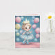 Une photo numérique de charme d'aquarelle d'une petite fille heureuse aux cheveux blonds bouclés, habillée d'une robe de fête bleu pâle et brillante et portant des bottes assorties. Elle porte une couronne dorée surdimensionnée et tient des ballons pastel dans des tons doux de rose, jaune et bleu. Sur le fond, un ciel bleu profond et rêveur, parsemé de minuscules étincelles et de ballons flottants, tandis que la jeune fille se dresse sur un sol rose et rose. La scène est de qualité conte de fées, pleine de chaleur, de joie et de fête.