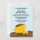 Cette invitation à la fête d'anniversaire des garçons a un thème de construction mignon. Au fond, il y a un camion à benne jaune qui transporte beaucoup de terre. En haut et en milieu, vous pouvez customiser toutes les informations de votre parti. Graphiques par babystardesign.com