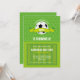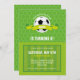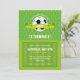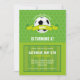 Une soirée de football amusante ou une invitation sportive dans un jeu de couleurs vertes, avec une illustration de ballon de football avec un filet de football et un arrière - plan de terrain de football. Parfait pour un petit garçon ou une fête d'anniversaire sportive.
