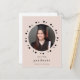 Cette invitation minimaliste moderne à la remise des diplômes de photographie comporte un cadre chic en noir et blanc simple pointillé avec photo circulaire sur un arrière - plan rose, et le dos de l'élégante carte postale d'invitation inclut les détails de la remise des diplômes avec adresse de retour.