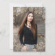 L'invitation photo chic de la fête de remise de diplômes comprend un design de fleur en bronze doré, une police de script élégante, des espaces réservés pour votre texte personnalisé, et un endroit pour une photo à l'arrière de l'invitation.