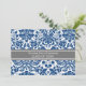 Invitation de la fête de graduation carte personnalisée dans élégant et sophistiqué style bleu marine foncé, gris et blanc classique vintage damas floral classique. Customisez cette carte de faire-part en ajoutant l'année de votre diplôme et les détails de votre fête de graduation.
