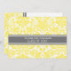 Une carte personnalisée de la fête de graduation dans un motif classique vintage de damas floral au citron jaune, gris et blanc élégant et sophistiqué. Customisez cette carte de faire-part en ajoutant l'année de votre diplôme et les détails de votre fête de graduation.