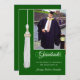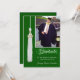 Invitation à la fête de graduation personnalisée verte et blanche. Ajoutez la date, le nom du diplômé et la photo au recto de cette carte de diplôme, et personnalisez les informations au verso. Carte conçue par Rycky Creations ; oeuvre d'art originale de goût blanc©doodles délicieuses. Contactez l'artiste pour une carte avec vos propres couleurs scolaires !