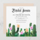 Cette conception d'invitation est basée sur des cactus verts avec des fleurs orange clair et rose qui donne design structure mexicaine. Drôle un peu et élégant. Ce modèle d'invitation à la douche nuptiale combine deux polices différentes et leur taille différente pour un look plus dynamique. Le budget signifie que le prix est inférieur à l'invitation standard en raison des caractéristiques du papier (plus fin mais aussi disponible en "satin" et "matte".