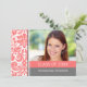 Invitation de la fête de graduation carte modèle photo personnalisée dans élégante et sophistiquée pêche rose orange, gris et blanc classique vintage damas floral modèle classique. Customisez cette carte de faire-part en ajoutant l'année de votre diplôme, votre photo et les détails de votre fête de graduation.