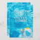 Invitation de la piscine avec cocktail et ballon de plage dans une eau turquoise.