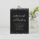 Cette invitation à la retraite élégante et festive présente des confettis en argent (feuille simulée) avec des lettres assorties qui disent "Célébration de la retraite" dans une belle police de caractères. La couleur arrière - plan est noire, mais peut être changée en n'importe quelle couleur de votre choix. Customisez l'invitation avec vos propres informations - une façon simple et simple de créer une carte personnalisée. Le côté arrière de la carte est doté d'un motif en pointillés argentés assorti - encore une fois avec un arrière - plan noir qui peut être customisé à n'importe quelle couleur de votre goût. Une façon simple et élégante pour les clients invitations de célébrer une retraite.
