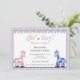 Fille ou garçon ? Renseignez-vous sur le sexe, dévoilez la fête et portez du rose ou du bleu pour représenter votre devin! Un tour amusant sur le baby shower traditionnel. Le sexe du bébé sera révélé lors de cette célébration ! Joli design rose et bleu, avec de petites girafes et une bordure rayée.